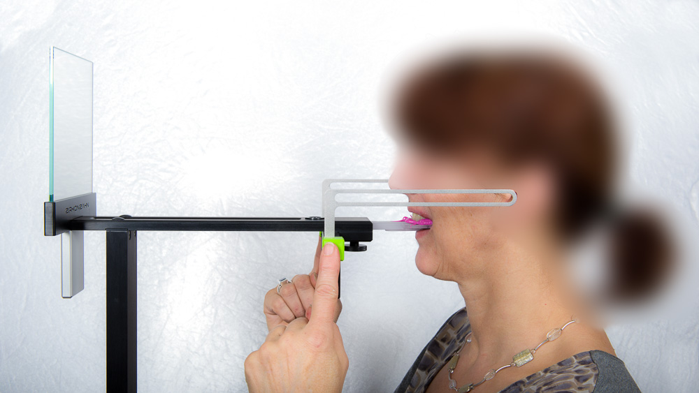 Oberkieferübertragung mit einem Plane Finder. Horizontale und vertikale Ebenen werden so in den Artikulator übertragen.