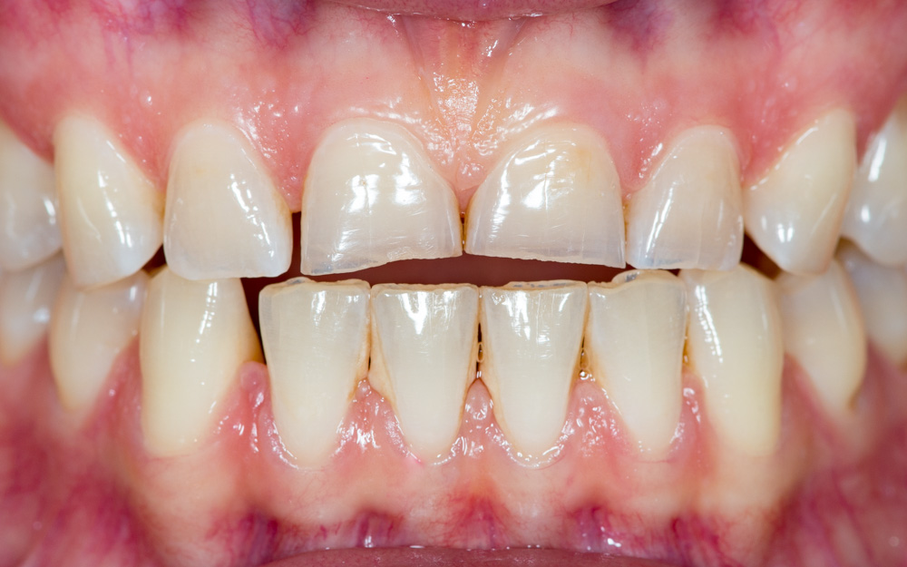 Vor Beginn der Behandlung - die kleinen Schneidezähne sind implantiert.