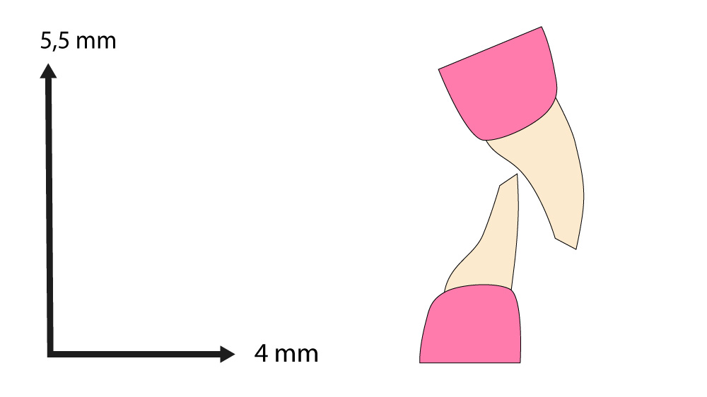 Das Langzeitprovisorium ersetzt das für die die Erstversorgung verwendete Eierschalenprovisorium.