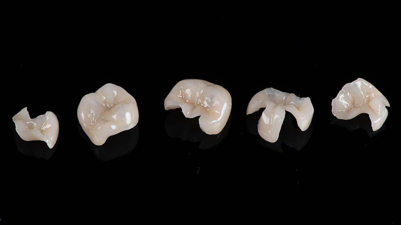 Anstelle von Zirkon können auch Presskeramiken zum Einsatz kommen. Ob vollanatomisch, bemalt oder mit geschichteten Aufbauten aus Keramik.