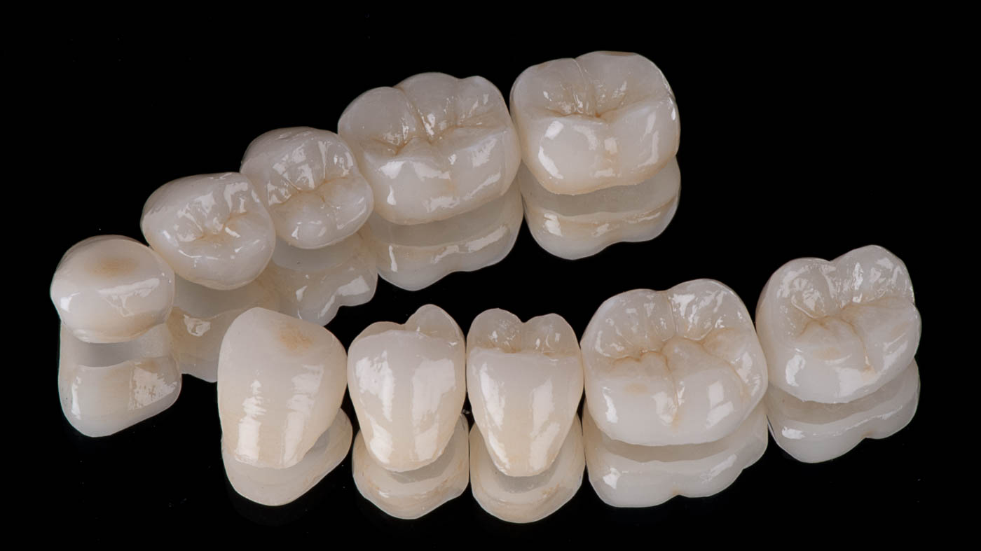 Die dritte Gruppe der vollkeramischen Werkstoffe ist Zahnersatz aus Zirkonoxid. Die Gerüste werden digital konstruiert und anschließend gefräst. Hierbei stehen mittlerweile eine Vielzahl an unterschiedlichen Materialien in verschiedenen Färbungen, Transluzenzen und Härten zur Verfügung.